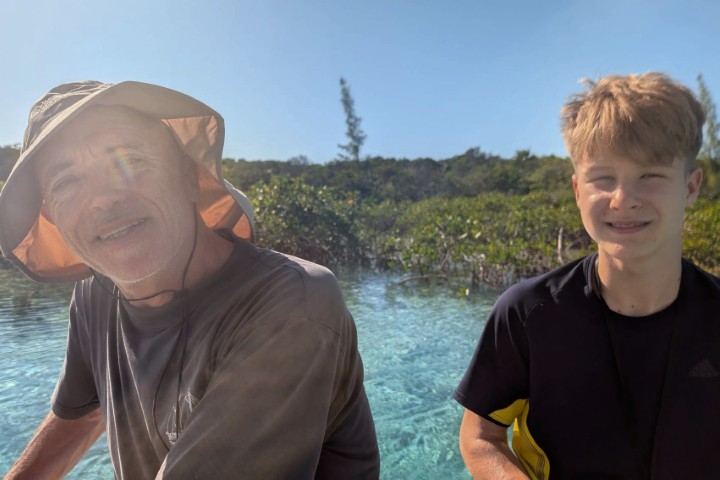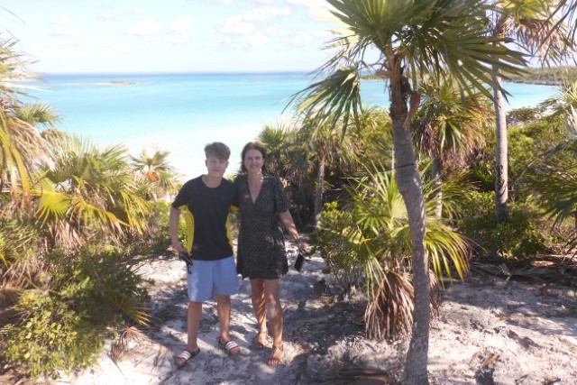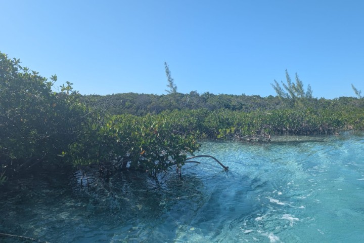 Kurz nach 13 Uhr erreichen wir unser Ziel für den heutigen Tag. Wir gehen in der Bucht vor dem „Exuma Cays Land and Sea Park“ vor Anker und machen uns mit dem Dinghi auf den Weg durch die Mangroven. Das Wasser ist beeindruckend klar und eine Schildkröte taucht vor uns ab. Da werden wir auf dem Rückweg wohl noch ein bisschen genauer aufpassen und die Kamera bereithalten müssen. Als wir dann die Washing Maschine erreichen verschlägt es Carlos und mir die Sprache. Es ist ein wahres Paradies! Ich hätte nie geglaubt, dass es solche Strände tatsächlich gibt. Palmen, glasklares Wasser über weißen Stränden, die sich bis zum Horizont erstrecken und wenig Menschen. Chrischan braucht Geduld mit Carlos und mir, denn wir wollen am liebsten bleiben. Wir toben bestimmt 1h im Wasser rum und hüpfen mehrfach von den Felsen in die Strömung. Wir können uns dann auch nur losreißen, weil wir auf dem Rückweg durch die Mangroven noch Schildkröten fotografieren wollen.