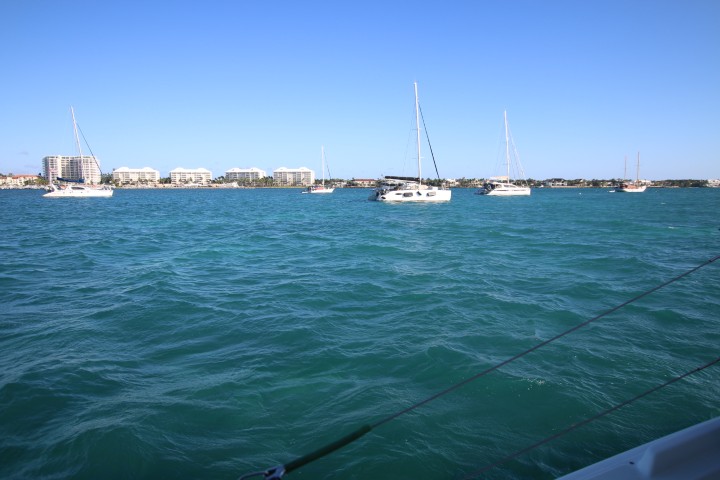 Inzwischen ist RE umzingelt. Heute liegen wohl insgesamt eher über 10 Schiffchen hier. Klar – Samstag werden die Leute zum Abflug in Nassau ausgeschifft. Und dann kommen „die Neuen“. Siehe Bild!