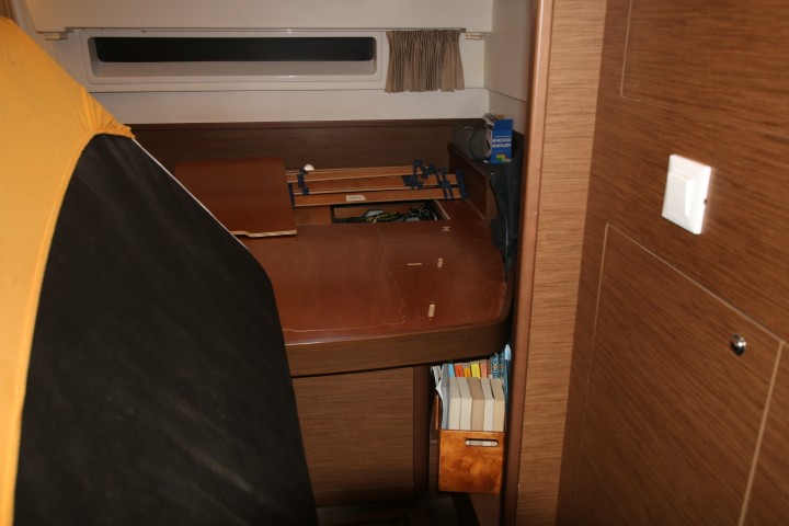 Dazu das Bett auseinander nehmen. Und dann beginnt die Rennerei. Aus den Tiefen des Bett-Unterbaus auftauchen, runter krakseln, raus auf die Terrasse und runter „in die Zeche“. Kabel nachführen, Rückhol-Seil aufpassen. Und wieder zurück zum Bett. Klar – ich habe ein Durchzug-Seil. Das macht die Sache überhaupt erst möglich, aber alleine ist es eben ein Hin- und Hergerenne. Endlich ist das Kabel angekommen, das Seil wieder zurück gezogen und ich darf mich an die Elektriker-Arbeit machen. Anschließen. Ist nur ein Wort, bringt aber auch mindestens 5 mal Rennen! Welches Werkzeug? Abschalten der Elektrik. Und klar: Es ist kein 15er Schlüssel, sondern ein 17er. Das ist dann wieder ein anderes Schlüsselpaket!