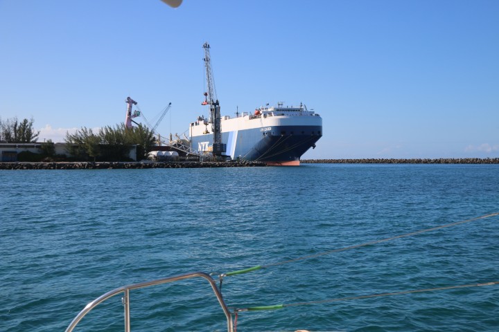 An der Industriepier liegt ein wahrer Klotz von Frachter. Ich schaue nach: Ein Car-Carrier. Ok – ob sich das lohnt, für die paar Autos, die sie hierher bringen, so einen großen Frachter zu schicken?