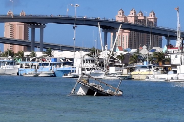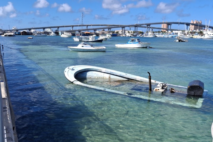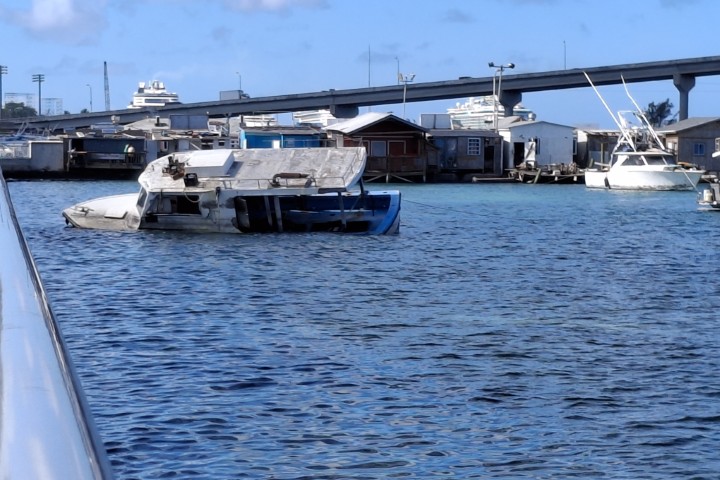 Und was war auffällig? Im Hafenbecken sind weniger Wracks. Ich zähle nur drei. Ein weiteres Boot ist nicht sicher feststellbar ein Wrack. Und der „Conch-Ponton“ ist immer noch da. Und immer noch versteh ich das nicht – muss wohl Kunst sein!