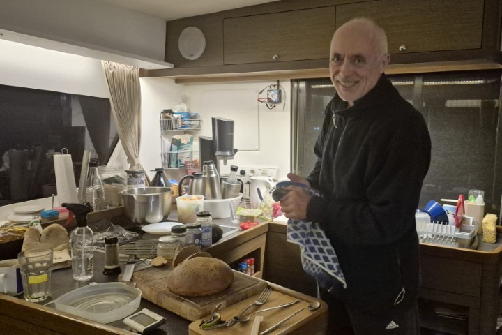 Friedrich verschwand irgendwann, Claudia leistete mir Beistand. Bald nach 1 Uhr bedankte ich mich und auch sie fand den Weg in die Koje. Ich wartete noch ein wenig. Kurz nach 2 Uhr machte ich mich bettfertig, noch eine Oberdecksrunde. Ordentliche Böen, also über 35 kn. Aber RE lag auf dem Fleck und auch die Ankerlieger um uns herum lagen stabil. Gute Nacht!