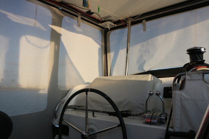 Den Sonnenschutz installiere ich wieder um den Salon, morgen soll es ja noch einmal gut werden – und Montag kann ich den ja auch wieder deinstallieren, damit mehr Wärme ins Boot kommt! Das sind dann auch die einzigen Fotos des Tages.