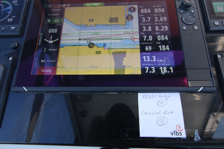 Dann die Brücke, macht heute wieder nur einen Flügel für mich auf. Auf der anderen Seite liegt ein Arbeitsboot. Nun – inzwischen weiß ich ja, dass es gut passt. Trotzdem wären mir beide Flügel hoch lieber.