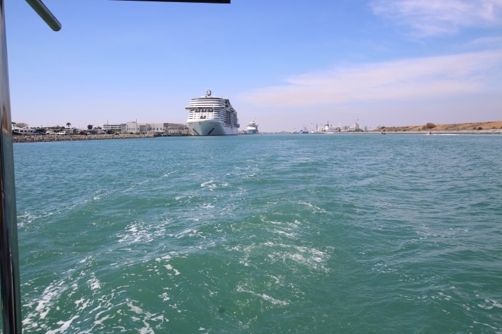 Mittagsposition: Cape Canaveral, mitten im Hafen, auslaufend.