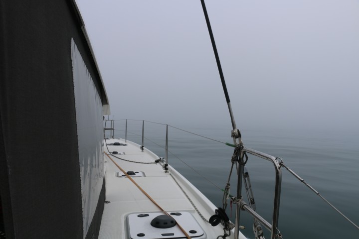 Mit Tagesanbruch wird es etwas unangenehm. Spiegelglatte See – das ist gut – und Nebel. Radar-Wetter. Nun hoffe ich, dass bei dem Wetter keine Angler unterwegs sind, die kein AIS haben. Dann wäre Radar die letzte Chance.