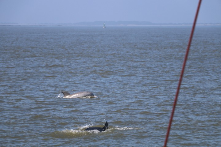 In der Einfahrt nach Georgetown, SC kommt mir ein anderer Segler entgegen. Ziemlich auf Kollisionskurs. Aber in AIS und Radar gut zu sehen. Ich rufe ihn an und er meldet, dass er mich auch „gesehen“ hat und ausweicht. Keine Kabellänge (185 m) entfernt begegnen wir uns. Und ich sehe ihn nur kurz und weil ich weiß, wo ich hinschauen muss! Doch beim Schwatz sagt er, dass inlands gutes, klares Wetter sei!