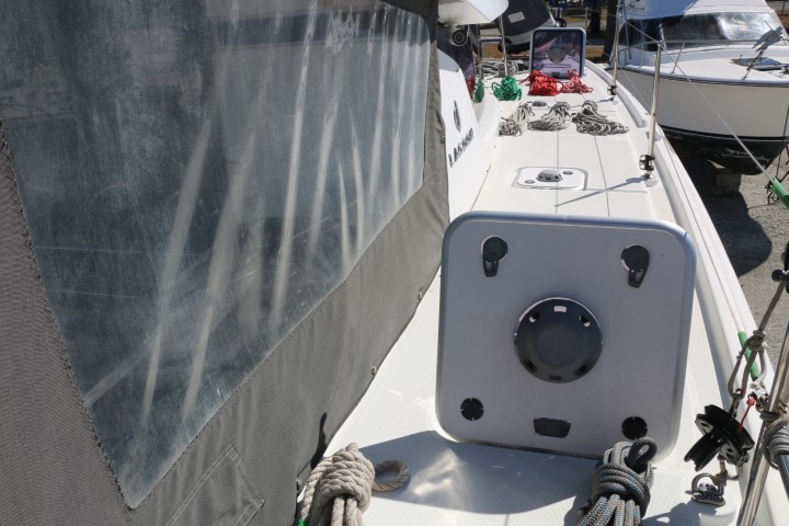 Und nicht nur die Sonne trocknet, ich beginne mit dem Steuerbord Rumpf. Oh – der ist im Wesentlichen schon trocken! So werden die letzten „Pfützen“ aufgenommen. Unter den Bodenbrettern gesaugt und gewischt. Und hier und da auch noch ein Kabelbinder angebracht, Leitungen etwas weghalten. So sauber war die Bilge noch nie!