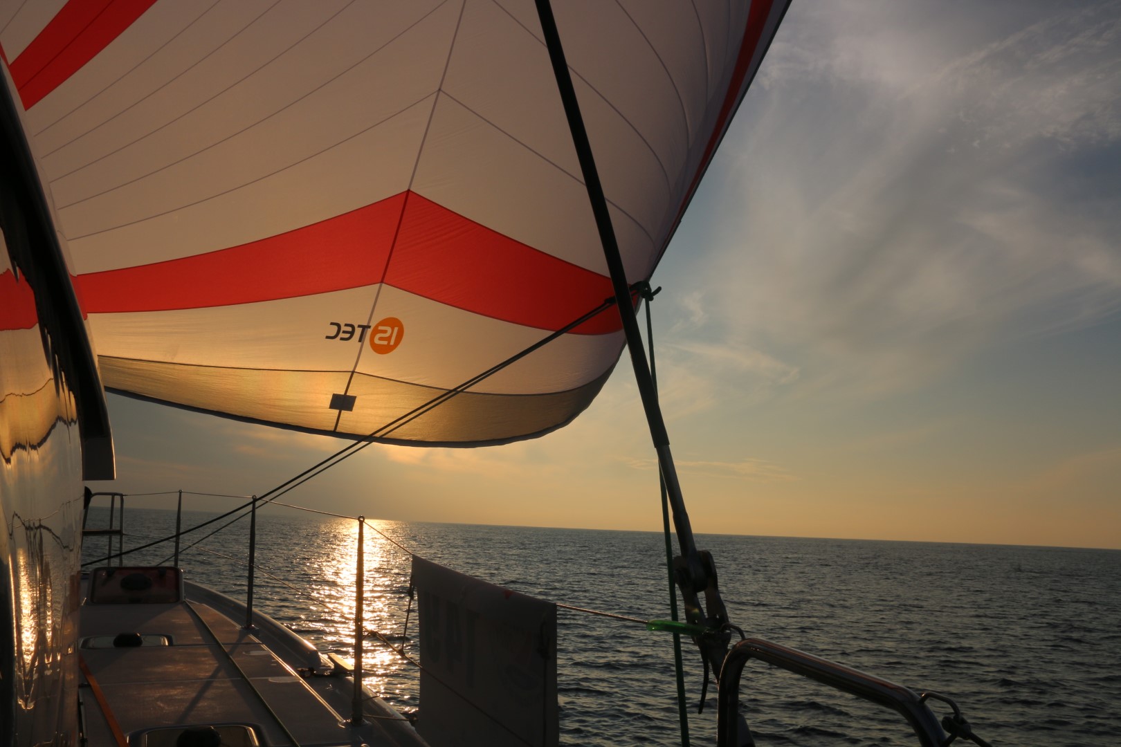 Ich mache noch schnell den Abwasch und um 20:30 verabschiedet sich Chrischan in die Koje. Den Parasailor wollen wir über Nacht oben lassen. Der Wind soll etwas schwächer werden, aber bei meinen Wachen hält er sich normalerweise nie an diese Vorhersagen! Mal schauen wie es sich heute Abend entwickelt.