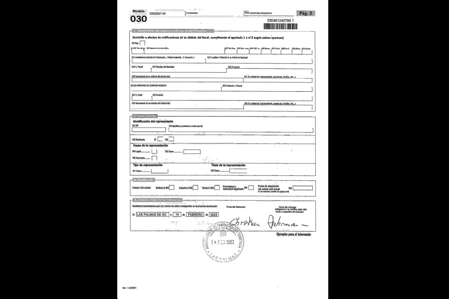 Wieder das gleiche Procedere: Ich zeige meinen vorbereiteten Text vor. Nun darf ich auch die NIE dazu tun. Und meinen Reisepass. Der Nächste hackt auf seiner Tastatur rum, deutet mir da zu bleiben. Verschwindet. Kommt wieder, hackt weiter. Ich muss eine Adresse in Spanien angeben. Puerto Muelle Deportivo nimmt er an, will aber noch den Liegeplatz wissen. Da improvisiere ich und sage Puerto pequino 4. Findet er toll. Wird so eingetragen. Verschwindet wieder, kommt mit 2 Zetteln wieder. Muss ich unterschreiben, bekomme einen in die Hand gedrückt und er nimmt wieder mein Tablet, dort habe ich ihm die Möglichkeit eingestellt, Spanisch einzugeben. Raus kommt: