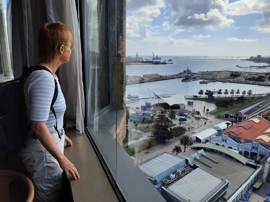 Das heutige Tagesprogramm wird von Karins Abflug bestimmt: 16:35 Uhr geht der Flieger. So können wir in Ruhe aufstehen. Die Luft ist gelb: Sahara-Sand. Die Sonne ist am Nachmittag kurz zu erahnen. Ansonsten: Grau-gelb. Da zieht es sogar Karin nicht zum Schwimmen. Wir trödeln noch dies und das an Bord. Noch ein kleines Mittagessen und dann geht’s ab. Für Karin: Tschüß RE!