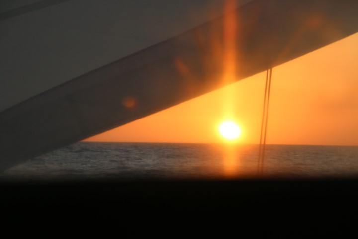 Der Wind entwickelt sich viel besser als vorhergesagt. Flott macht RE 5, manchmal sogar über 6 Knoten. Prima, das hatte ich so nicht erwartet. Da brauche ich den ParaSailor erst mal nicht klar machen…. Mittags dann große Zufriedenheit: Unser Etmal beträgt knapp über 20 Meilen. Für knappe 4 Stunden Fahrt prima! Und ich bekomme erst mal ein „Sonntags-Feiertags-Frühstück“. So vergeht der Tag. Noch ein wenig Aufräumen und Säubern.