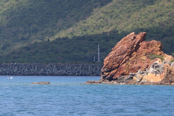 - Der Mast von VITAMIN SEA und die Landebahn: Die Mauer ins Meer!