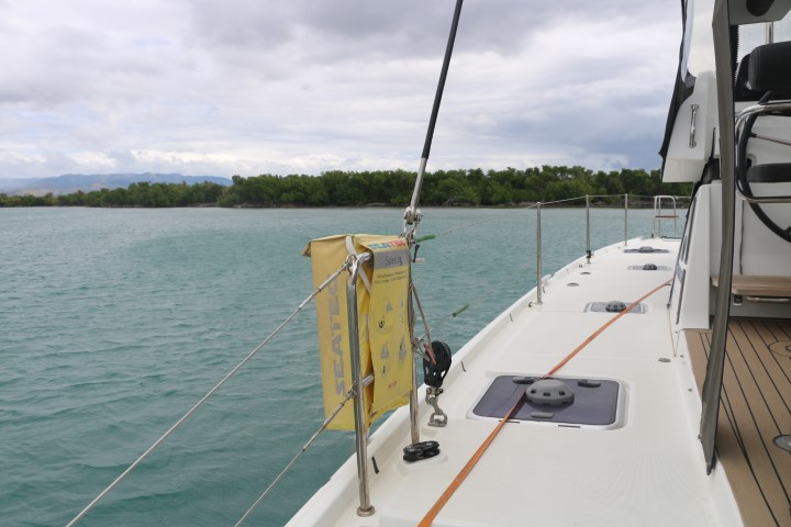 Bald nach 10 sind wir da. Und sollen erst mal nicht reingelassen werden. Aber wir sollten doch kommen! Hmmm. Nun gut – inzwischen stehen eine ganze Horde Officers um uns herum. Wer gesagt hätte, wir sollen einfach rüber segeln? Na der auf den US Virgin. Ja, aber da gäbe es mehrere. Oh weh. So kommen eine ganze Menge Fragen, die wir nicht beantworten können. Dann für die VITAMIN der Knaller: Also das kostet 575 $ ! Pro Person! Mit ESTA könnten sie nicht einreisen. Ich kann mein B2-Visum vorweisen. Gut – also ich dürfe mich melden. Dann die Erlösung für die VITAMIN: Sie haben ja einen Stempel im Pass. Klar – waren ja schon auf den US Virgins. Zweimal: Einmal mit der Fähre (hat auch über 100,- pro Person gekostet) offiziell eingereist. Dann wieder zurück und das Boot geholt. Das ist ok.