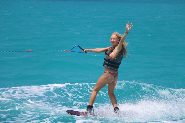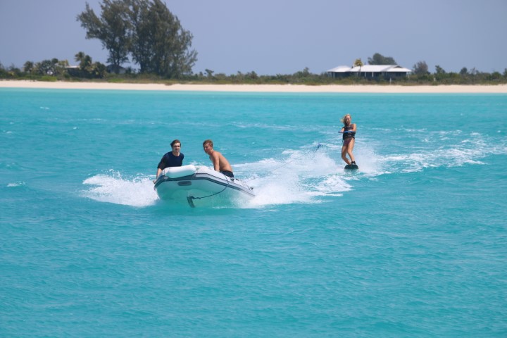 Vormittags ist Wasserspaß angesagt. Ich darf Wake-Boarding probieren und dann werde ich auf der „Tube“ durch die Gegend – und natürlich auch ins Wasser – geschleudert! Anna hat es wunderbar vorgemacht. Ich habe Probleme mit dem Wake-Board richtig aus dem Wasser zu kommen. Beim letzten Versuch klappt es dann. Aber lang wird die Strecke nicht. Ich wackle zu sehr hin und her und irgendwann erwischt es mich!