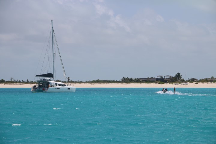 Das Schöne am Verlegen mit der VITAMIN ist, dass Peter die beiden jungen Kerle rüber schickt, den Anker hoch zu holen. Ich stehe nur im Steuerstand und die beiden schuften! Hurra. Kaum ist der Anker gesichert, flitzen sie dann wieder „nach Hause“. VITAMIN fährt vor, denn bei mir endet der Weg durch die Korallen auf der einen Karte kurz vor dem Ziel. So navigiere ich da nur doppelt: Hinter der VITAMIN her und auf meinem Tablet. Wir kommen sicher in den anvisierten Nebenarm. Beim Anker fallen haut es dann die letzten Zähne meiner Ankerwinsch kaputt. Hurra! Nun habe ich da gar nichts mehr. Hoffentlich klappt das mit der Sendung nach Nassau… Und jetzt muss ich mir ein neues Verfahren ausdenken, dass mir nicht die ganze Kette ausrauscht. Und beim Einholen wird es einfacher, kann ich doch nun wieder kurbeln. Aber wenn dann Spannung auf die Kette kommt, dann bremst nichts mehr. Und so schnell die Kralle auf die Kette setzen, das bekomm ich nicht hin. Nun – da muss ich noch drüber nachdenken.
