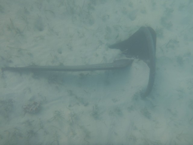 Am späten Nachmittag dann schnorchel ich zur Huk. Doch das Wasser ist trübe. Auf dem Rückweg komme ich an einer ulkigen Stelle vorbei: Soll es ein künstliches Riff sein? Ist meiner Meinung nach die beste Erklärung.
