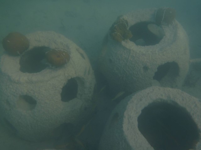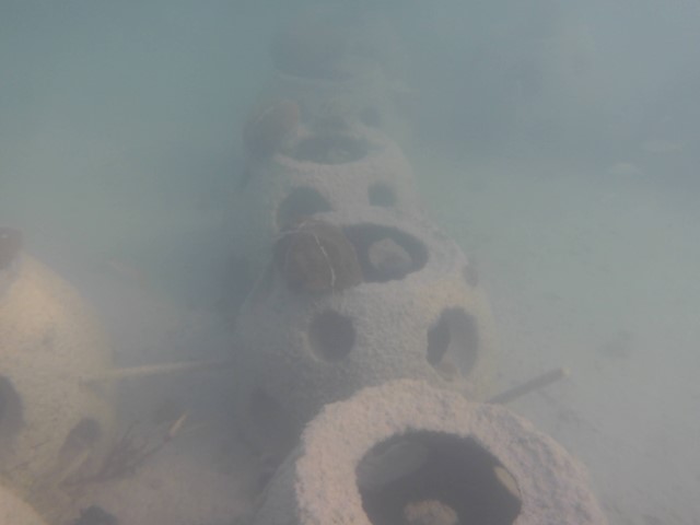 Nachtrag, 28.03.: Meine Schwester Gesa hat herausgefunden: Ja - diese Hohlblöcke sind als künstliche Riffe versenkt worden.