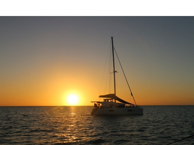 Zum Sundown dann (fast) die ganze Bagage auf RE. Wir starren in den Sonnenuntergang – an der VITAMIN vorbei, auf der Nico Abendessen zubereitet. Sehen wir heute den „grünen Blitz“? Ein seltenes Natur-Schauspiel im Moment, wenn die Sonne verschwindet. Doch was eben noch nach wolkenklarem Untergang aussieht, verwandelt sich innerhalb von einer Minute zu einem Untergang inmitten von Wolken. Schade.