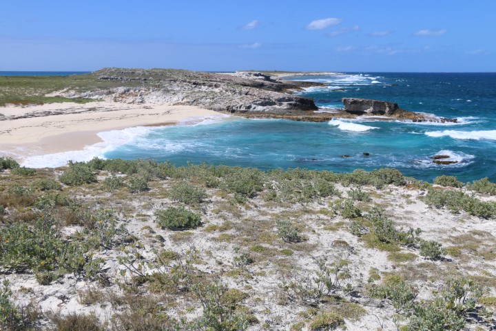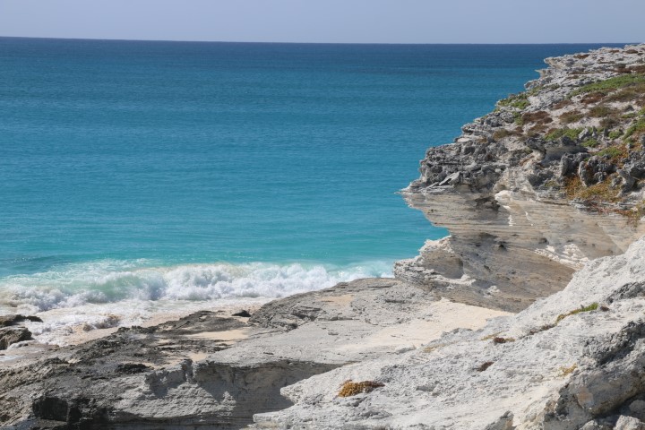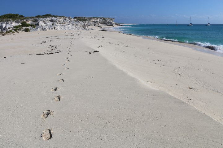 Die Felsformationen, der schöne Stand an der Westseite, die Wellen – das alles ist wunderschön. Hier beginnt also die Karibik, so wie man sie sich erträumt. Die VITAMIN SEA Crew hat nicht genügend festes Schuhwerk mitgebracht und so stapfe ich alleine um die Insel.