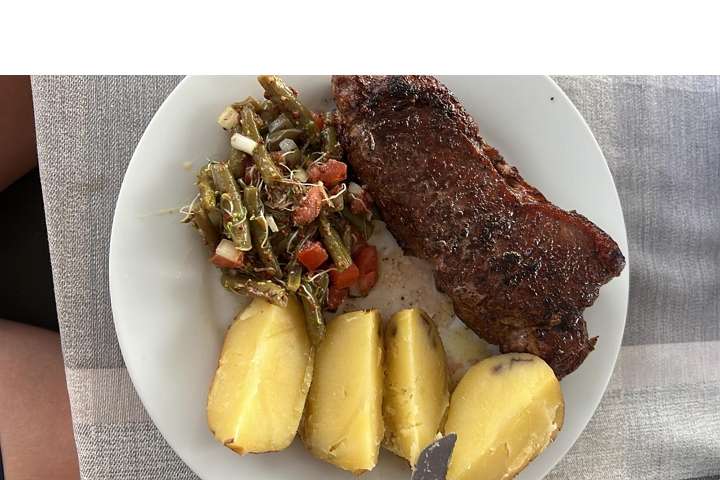 Gegen 16.30 Uhr bin ich dann fertig zum Anker-Auf. Und genau da kommt Nico. Er will mich durch die Nacht fahren. Also zumindest den ersten Teil, die erste Wache. Wie angenehm! Und – er möchte heute zum Abendessen Steak. Hat er auch gleich mitgebracht. So wird dann mein Bohnensalat und dazu dann Back-Kartoffeln angenommen und er macht – wieder hervorragend !! - Steaks für uns zwei.