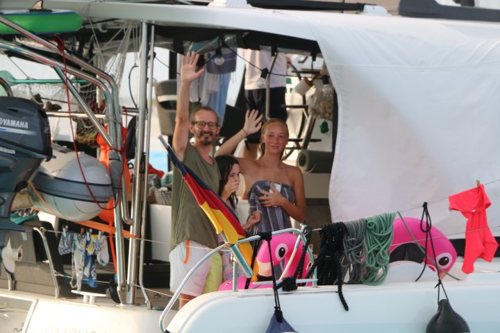 Der Tag beginnt auf der VITAMIN SEA mit einem letzten Bad. Dann geht Peter Anker-Auf und ich winke Uwe und die Kinder ab. Tschüß! War nett, Euch kennen gelernt zu haben! Bei mir kehrt dann Ruhe ein, was heißt: Büro-Arbeit. Immer noch ist die Steuererklärung nicht fertig. Zur Erheiterung gönne ich mir dann ein paar kleine seemännische Arbeiten.