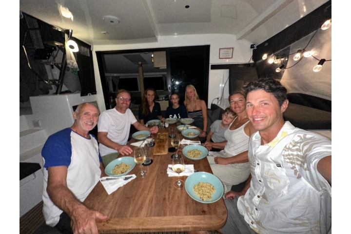 Zum Abendbrot sind alle auf die VITAMIN SEA eingeladen. Da darf ich dann eine Papaya mit Limettensaft als Nachtisch beisteuern. Zum Spielen kommen wir wieder mal nicht. Irgendwie dreht immer einer an der Uhr…