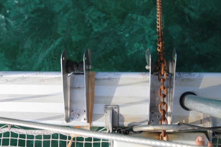 So ist der Tag zermatscht. Um überhaupt was Sinnvolles zu schaffen, mache ich mich ans zweite Ankerketten-Leitblech. Ich weiß ja nun wie und so bin ich eine gute halbe Stunde schneller. Im Laufe des Tages ziehen die norwegischen Einrümpfer weiter. So bleibt nur noch die TEMPUS da.