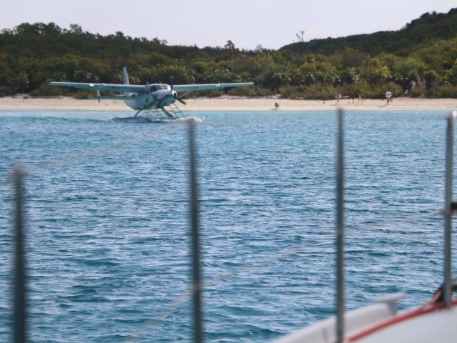 Während ich am Morgen noch an einem Beitrag (23.04.) sitze, höre ich ein ulkiges Geräusch: Also ein „Fixed-Wing“ (Tragflächen-Flugzeug) hört sich anders an. Aber wie ein Hubschrauber hört es sich auch nicht an. Und wie ich noch zweifle, klatscht es an Steuerbord runter: Es ist ein Wasserflugzeug. Landet direkt neben RE und gleitet aus zu den „Swimming pigs“. Ein paar Minuten später „fährt“ es raus und startet quer zum Wind. So kann man die Attraktionen der Bahamas wahrscheinlich an einem Tag „machen“…