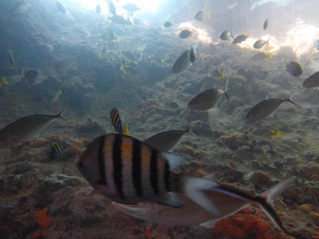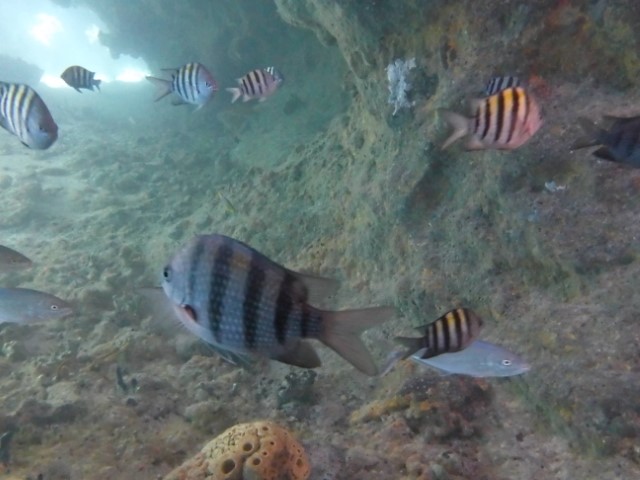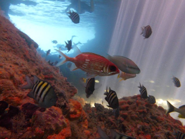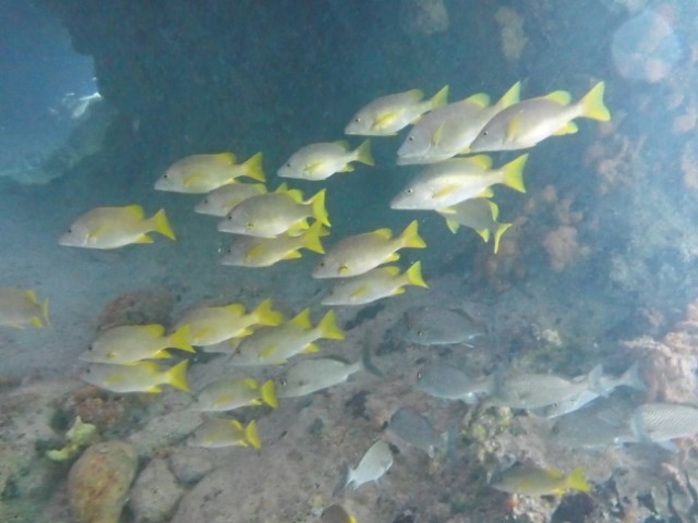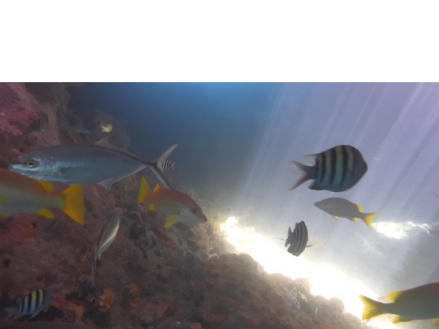 Zum Mittag werde ich dann von der VITAMIN abgeholt. Wir betauchen heute die James-Bond-Grotte, die in Thunderball gedreht wurde! Ein phantastisches Erlebnis! Alle tauchen begeistert aus den verschiedenen kleinen Ausgängen raus! Während ich einmal um die ganze Insel schwimme, springt Anna durch eines der Löcher in der Decke in die Höhle. Aber nach einer guten Stunde wird es langsam – trotz Shorty – kühl. Und das geht nicht nur mir so. Bald trudeln alle bei den Dinghys ein. Mögen die Bilder und Filme für sich sprechen! (Auf Instagram ist der von Peter (JUNE) zu sehen: Einfach mal oben auf der Homepage auf das Insta-Symbol klicken!.