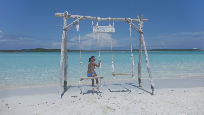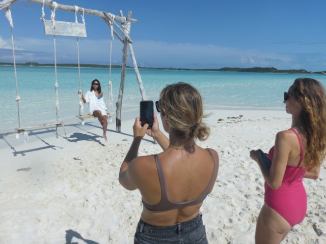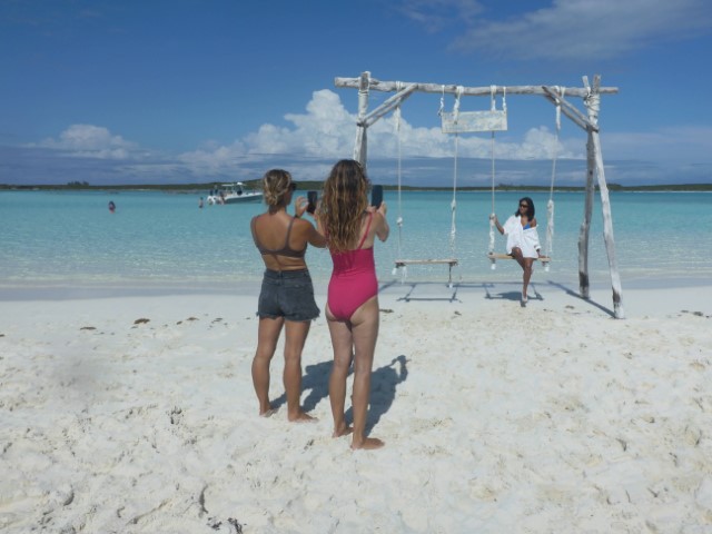 Die Ladies nehmen mich mit: Ausflug zu „The Swing“. Doreen und ich haben es gestern nicht geschafft. Und so wird das Ganze heute noch mal wiederholt. Wir haben heute wunderbaren Sonnenschein. Und so lohnt es sich! Auf einer Sandinsel von vielleicht 100 x 20 Meter steht eine große Schaukel. Das ist eigentlich auch schon alles. Aber es gibt damit wunderbare Fotomotive. Und so wird gepost, fotografiert und gefilmt. Und dann das Ganze noch mal von vorn. Die Kinder sind eher am Wasser und am Sand interessiert. Und schön hier: Keine Sandflöhe! Ich wandere zweimal um die Insel. Gut – das ist in 5 Minuten incl. Fotografieren erledigt. Aber trotzdem schön! Doch leider auch hier: Es findet sich überall Plastik!