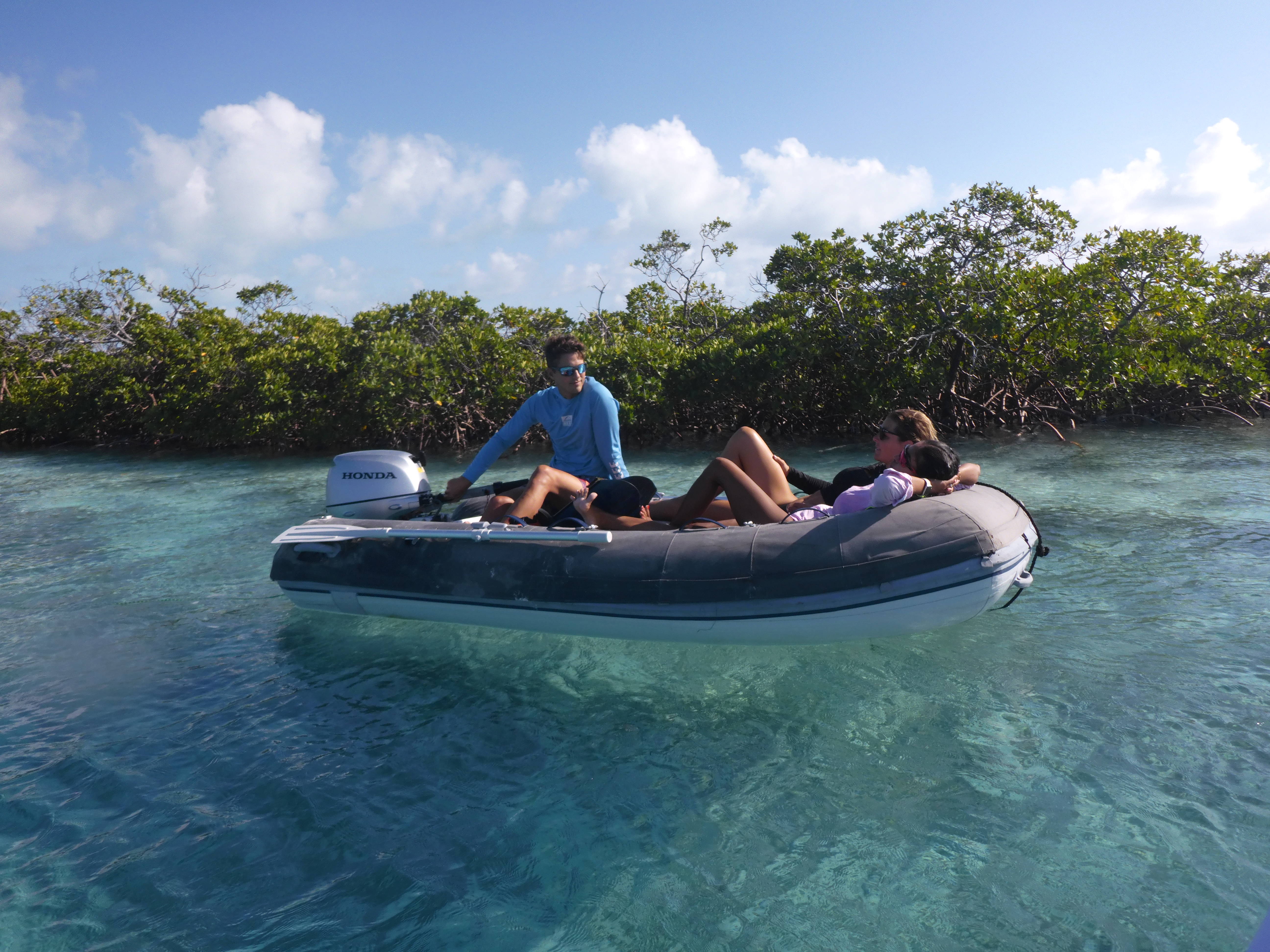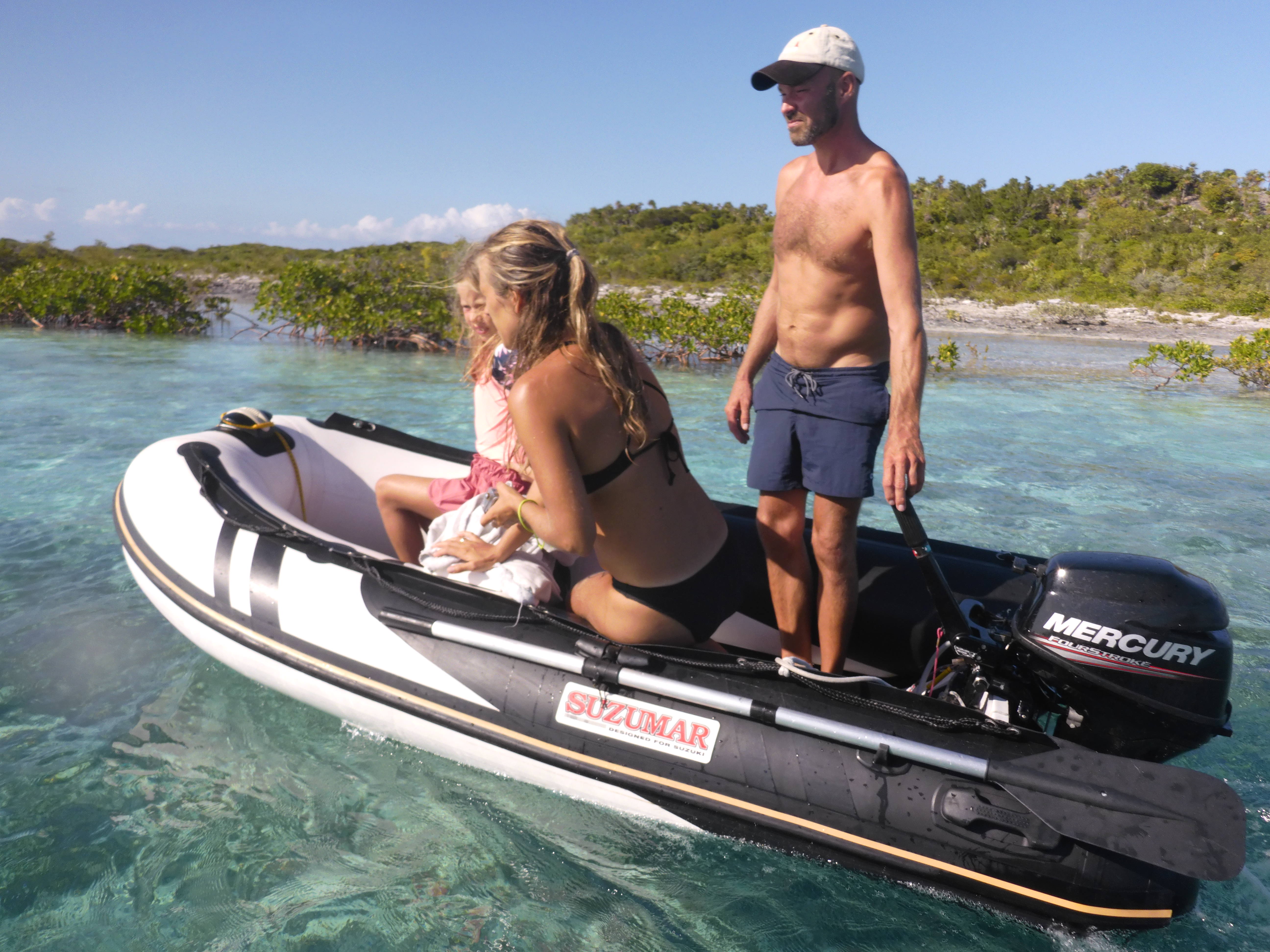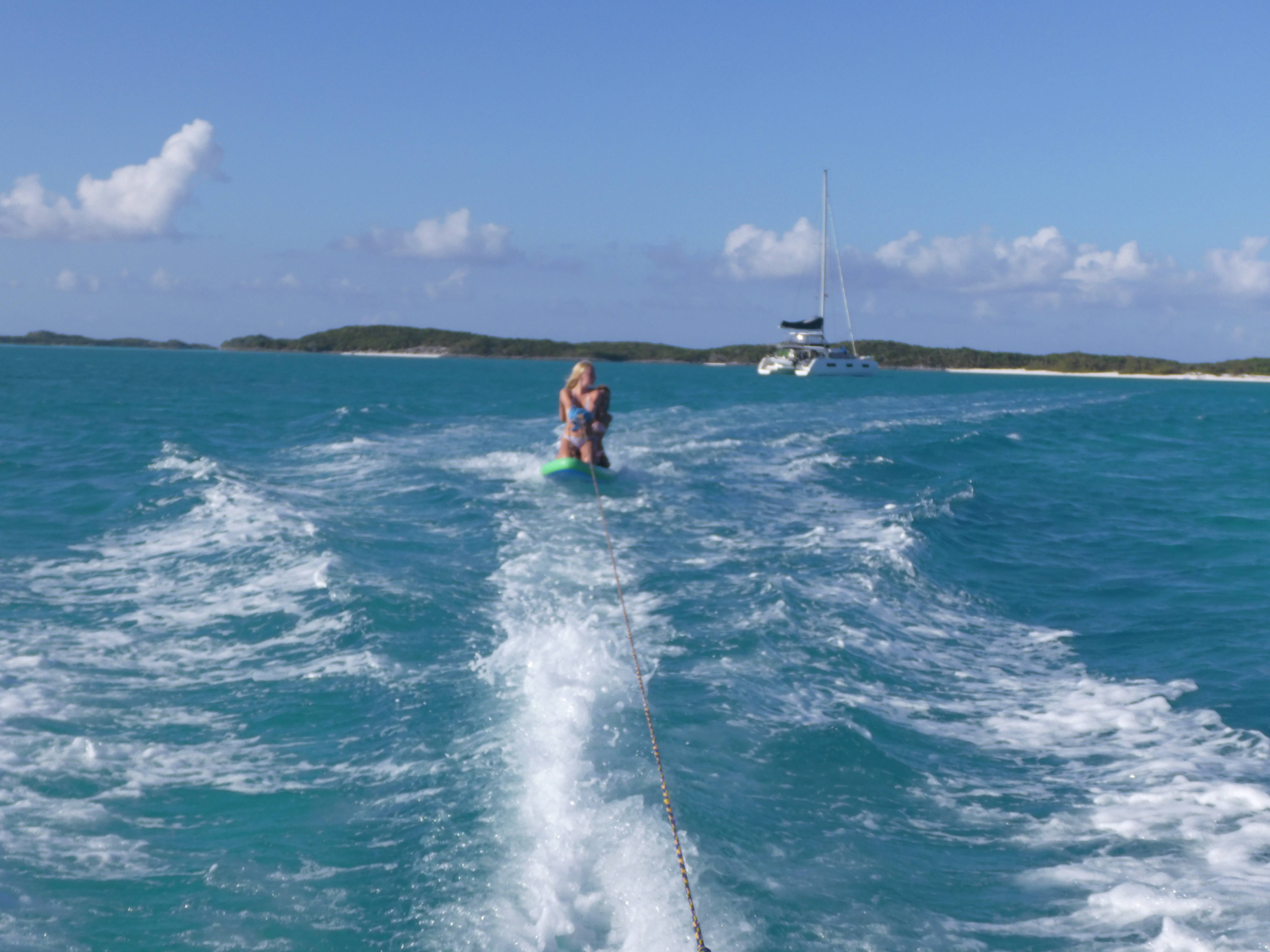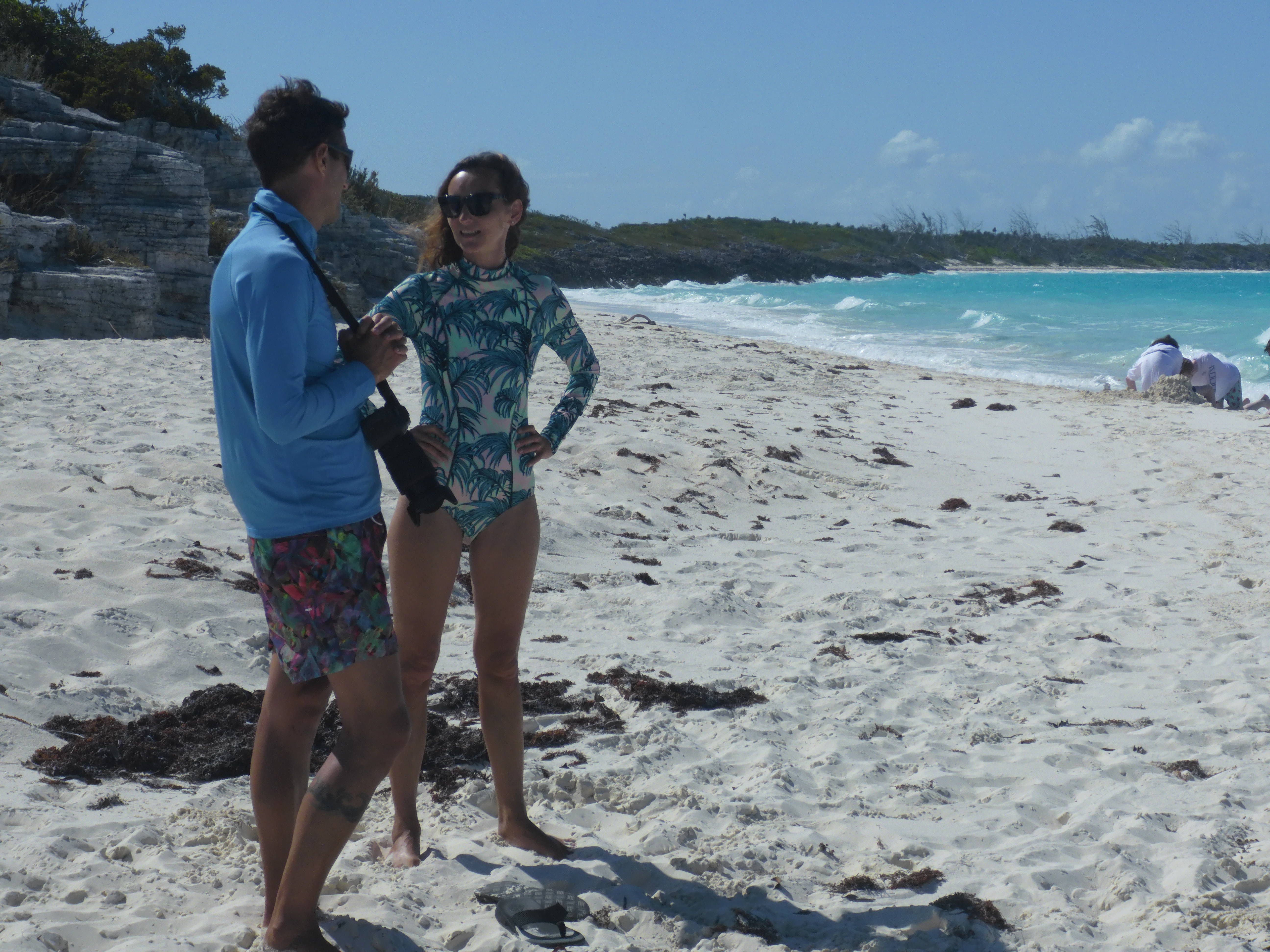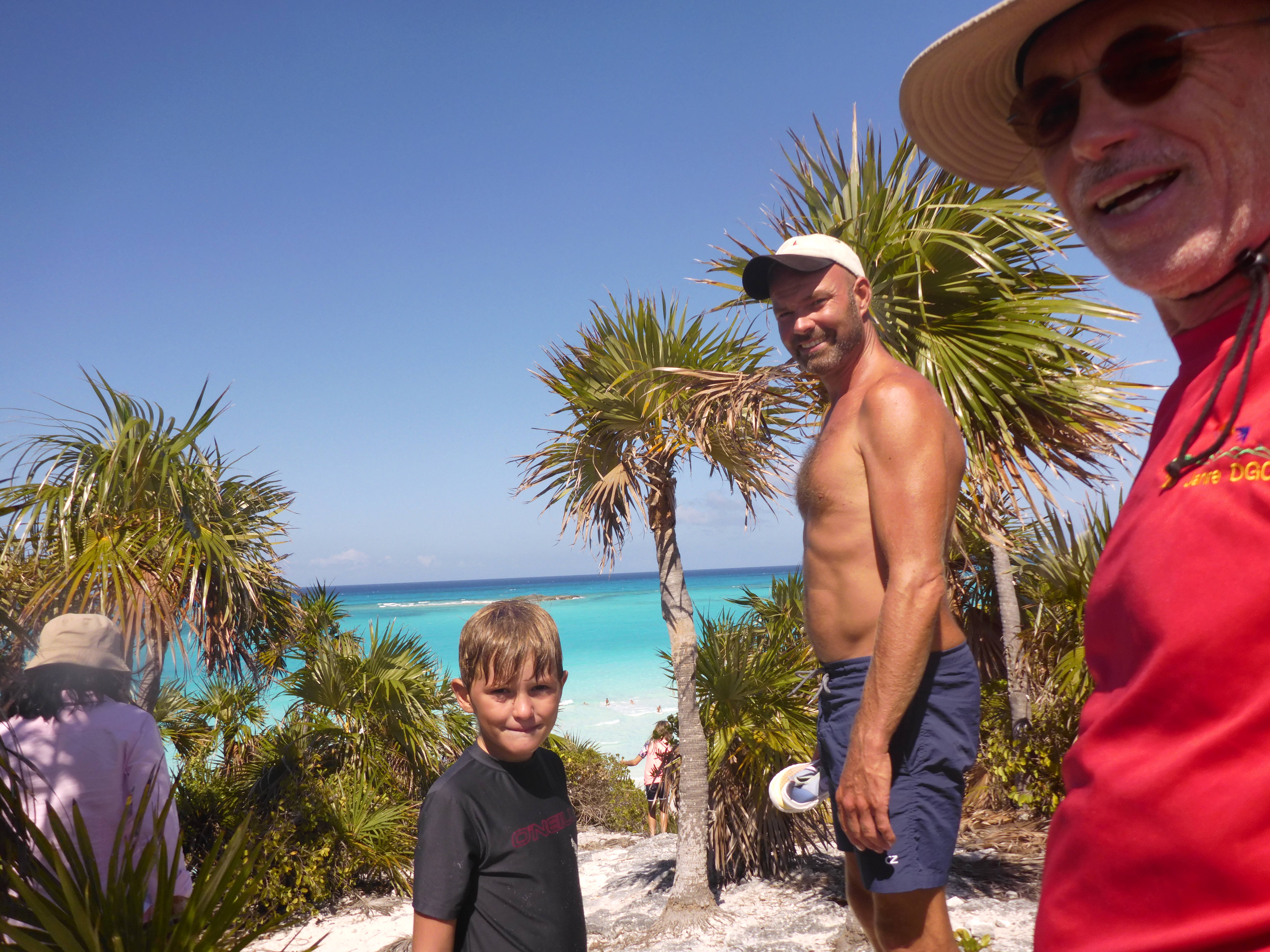 Am Ziel sehen wie den Atlantik auf der anderen Inselseite. Camp Driftwood ist der – kaum 15 Meter hohe – Hügel gleich neben dem Einschnitt in die Insel. Da hat die US DEA in den 80er Jahren einen Beobachtungsposten zur benachbarten Insel, auf der ein bekannter Drogenbaron seine Geschäfte tätigte. Und die Wash-Machine? Ist hier der Einschnitt. Kräftige Strömung an der Engstelle wird dazu genutzt, sich einmal (oder auch öfter) durchziehen zu lassen. Wir sind bei auflaufendem Wasser da und springen auf der Atlantikseite rein und lassen uns rein ziehen…