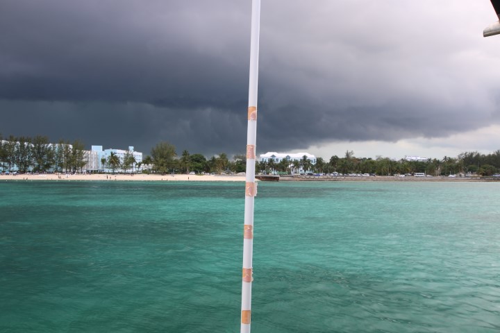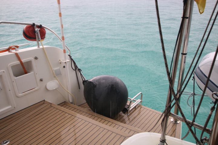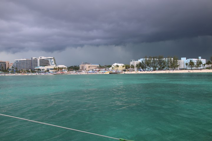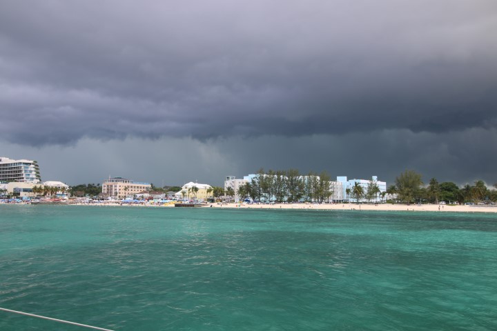 Ich beobachte die Situation noch ein wenig im Steuerstand. Dann im Salon. Nein – jetzt hält der Anker. (Gut – den ersten Reiter habe ich mit aufgesetzt. Es wird dann 5 Uhr bis ich zum Schlafen komme. Tagsüber sehe ich dann, dass ich nicht weit genug von der Tonne weg bin. Dieses Mal kein Risiko: Umankern. Da noch ein Gewitter über Nassau zieht dauert das fast 3 Stunden. Aber dieses Gewitter ist „nett“: Hält sich min. 1 Kilometer von RE weg! Aber wieder stehe ich im Standby und beobachte es. Dann ist klar: Vorbei!