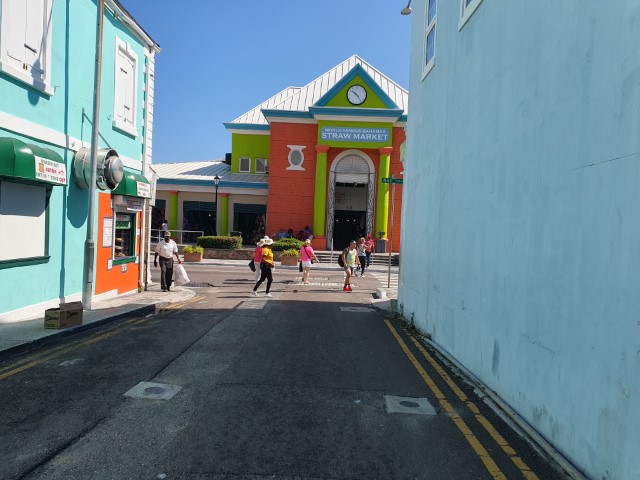 Auf der Promenade ein Blick zurück zu den Boten. Nassau Downtown im Bereich der Kreuzfahrer-Pier ist sehr touristisch. Natürlich kehre ich im „World famoust Straw Market“ ein… Und auch schnell wieder raus.