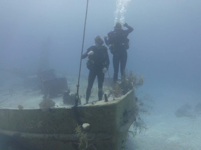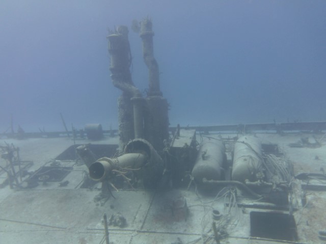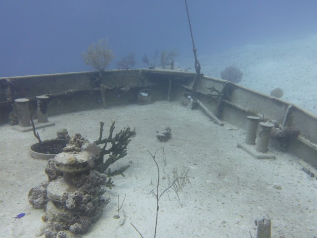 Morgens wird erst mal der Brot-Teig von gestern geformt und zur Gare gelegt. Die Zeit geht es dann mit dem Dinghy von KISS auf Schnorchel-Erkundungstour. Ja – hier wollen wir heute Nachmittag dann mal mit Gerät hin! Ein Rohrgestell identifiziere ich als Korallen-Anzucht-Station. Den B2-Bomber von „James Bond“, der zwei Atombomben entführt hat, erkenne ich in dem Gestell nicht wieder… Aber die beiden Wracks sind eindeutig. Auch Hinterlassenschaften von 007!