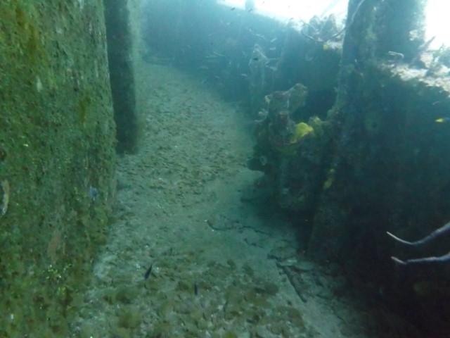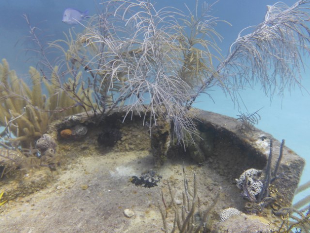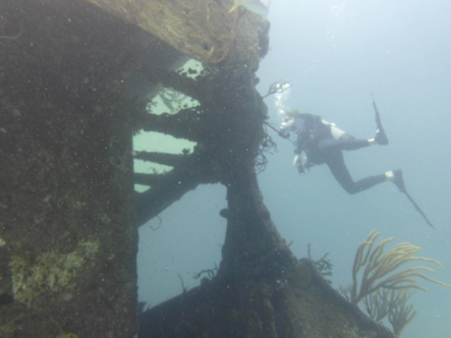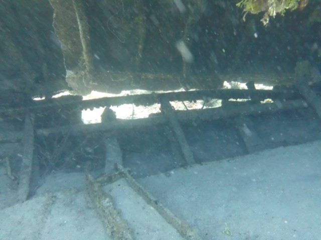 Daneben gibt es dann Fisch und Korallen auf dem Weg zu dem Wrack. Schnorchelnd konnten wir das nicht so genau untersuchen. Mit Gerät hat man alle Zeit, drum herum und ein wenig hinein zu tauchen. Auch am und im Wrack sind die Haie….