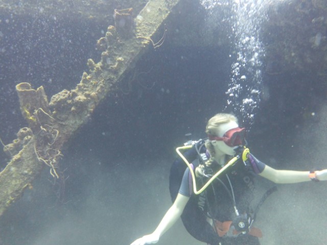 Am Wrack finden wir dann auch unsere anderen beiden wieder. Ich versuche mal einige Korallen im Detail auf zu nehmen. Und natürlich post Anna – da werden auch Fotos gemacht….