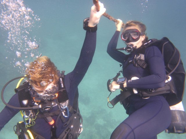 An Bord beginnen wir sofort mit dem Flaschenfüllen. Eine kleine Strecke weiter wollen wir heute noch einen zweiten Tauchspot erkunden. Um es kurz zu machen: Nette Korallen, aber die versprochenen Wracks finden wir nicht. Für Anna interessant jetzt einen Gruppen-Tauchgang mit geringem Briefing zu machen. Muss auch mal sein…
