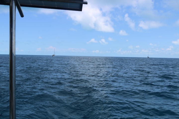 Morgens ganz in Ruhe Ankerauf gegangen und Richtung Südost zum „Blue Hole Nassau“ los. VITAMIN ist in den frühen Morgenstunden von ihrer Ankerposition westlich Nassau gestartet und hat 2, 3 Meilen Vorsprung, KISS kommt etwas hinter mir. So diskutieren wir noch ein wenig, wie genau die Position ist. Und dann meldet VITAMIN, dass sie gerade drüber gefahren sind! Jo – wir haben es! VITAMIN ankert auf der Westseite, ich fahre an denen vorbei über das Hole und ankere auf der Ostseite. So ist es im Wasser dann ganz einfach: Auf VITAMIN zu und wir fallen ins Loch! Klappt dann auch prima.