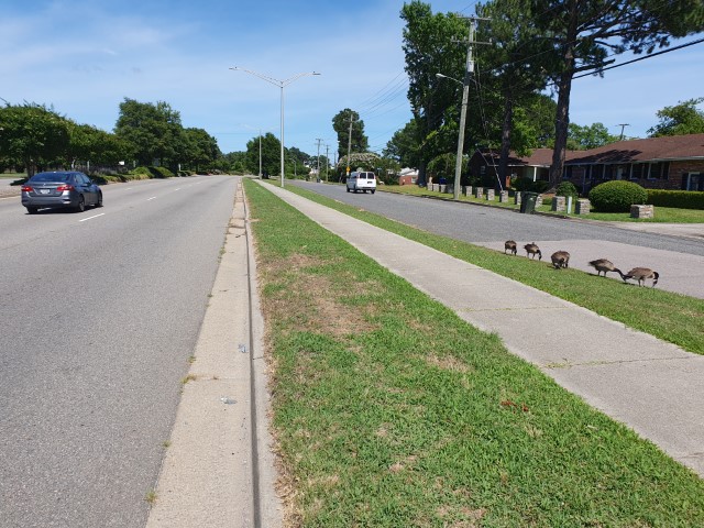 Ich fahre ja gerne so durch die Gegend. Man lernt immer wieder was über Amerika. Heute: Maps führt mich mitten durch die Uni Norfolk. Das ist witzig, denn das Unigelände ist hier abgeschottet. Am Eingang Schlagbaum und jeder Wagen wird hochnotpeinlich befragt, was er denn auf dem Gelände will. Also – so wie ich das will – einfach nur durchfahren, weil es der kürzeste Weg ist, das geht mit dem Wagen nicht. Ich werde müde durchgewunken. Wer mit dem Fahrrad kommt, der muss wohl hier dazu gehören! Hihihi!