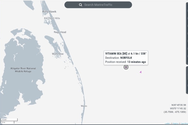 Abends dann bereite ich eine „Einlauf-Anweisung“ für die VITAMIN SEA vor. Die sind nun wirklich auf dem Anmarsch. Leider ohne die KISS. Die beiden splitten am Nachmittag. KISS geht wohl direkt nach New York. (Das Dreieck rechts von der VITAMIN ist die KISS!)