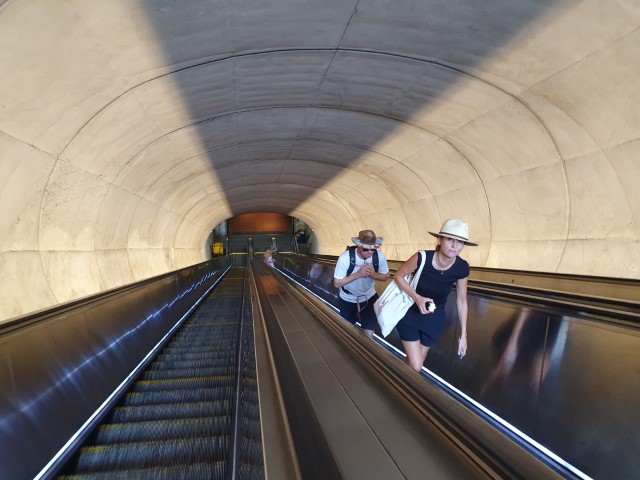 Mittags geht es dann in die Stadt. Zunächst einmal zum Dupond Circle. Vor über 20 Jahren eher ein wenig schäbig ist es heute die totale In-Gegend. Doreen hat hier früher gewohnt und zeigt uns alles. Ihr Apartement-Haus hat oben einen Pool mit Super-Ausblick. Toll! In einem Park rasten wir und bekommen einen kleinen Snack – die (grauen) Eichhörnchen hier sind nicht ganz so frech, dass sie sich bei uns bedienen, aber bei weitem nicht so scheu wie unserer rot-braunen…