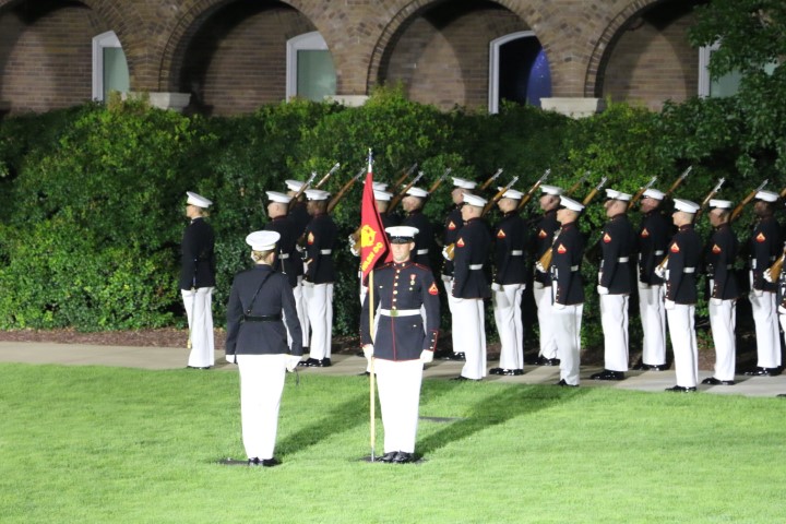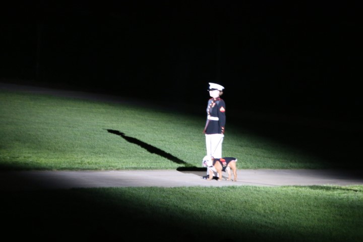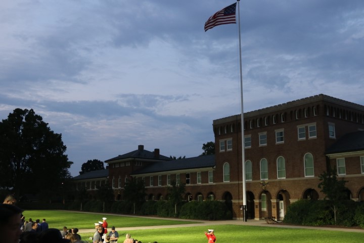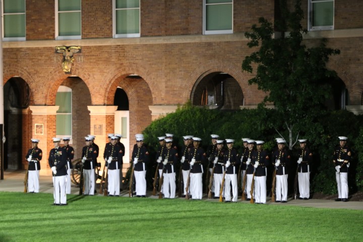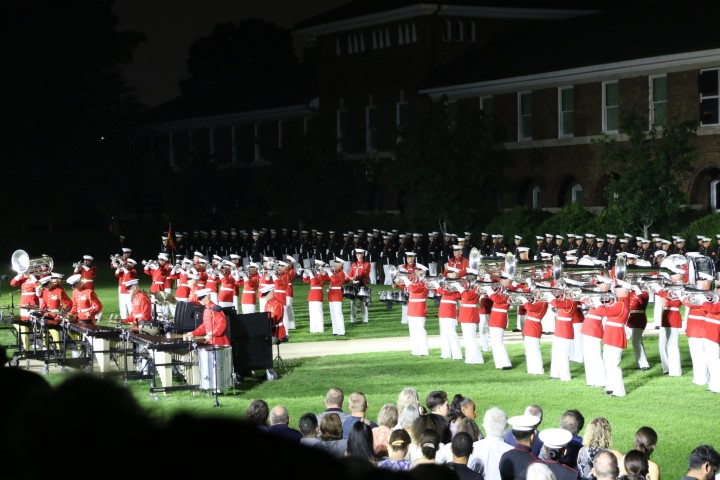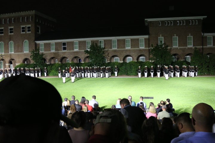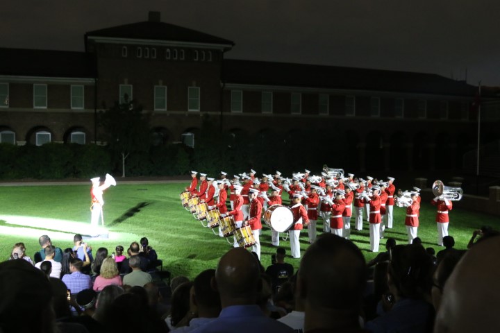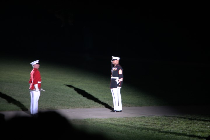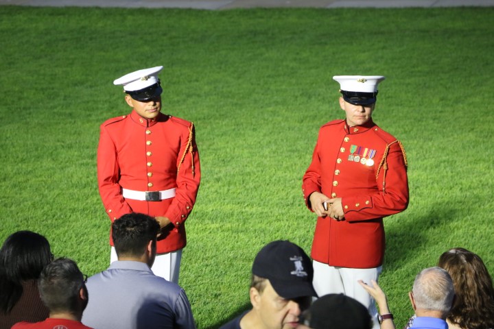 Gegen 18 Uhr fahren die Crews der VITAMIN SEA und der RE dann nach Osten: Zu den Marine Barraks. Ich habe Tickets für „Gate 9“. Und den Hinweis: Sitze avaliable, first comes first served. Also sind wird kurz vor Öffnung der Gates um 19 Uhr da. Klappt auch prima, wir bekommen auf der Tribüne Plätze ganz oben. Nur: Am Ende werden alle sitzen, wir hätten auch ne dreiviertel Stunde später fahren können….