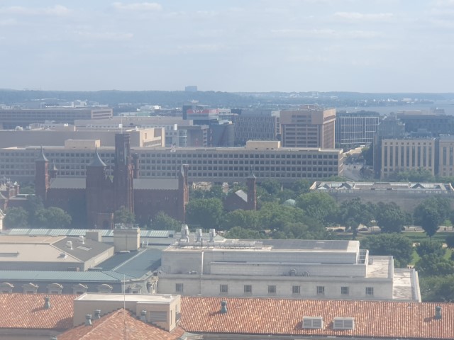 Oben empfängt uns ein wunderbarer Aus- und Überblick über Washington. Anna ist ganz aufgeregt: Da hinten steht der Eiffel-Turm! Nun – es ist Hughes Memorial Tower. Sieht aber schon ein wenig so aus… Ansonsten wird fotografiert, was die Linse hält.