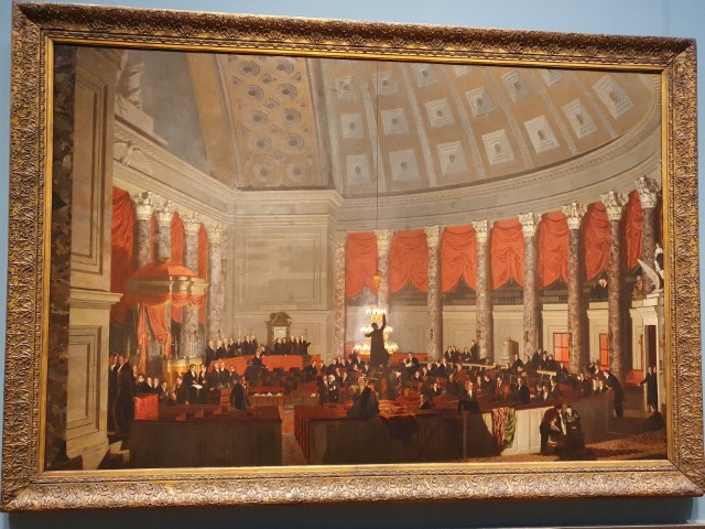 Rubens und Rembrand – und dann auch noch ein Bild mit Aha-Effekt: Der Saal des (alten) Repräsentantenhauss des Capitols. Dazu auch einige Skulpturen. Mit meiner veranschlagten Stunde komme ich hin. Dann suche ich Michèle. Renne lange knapp hinter ihr her – sie bemerkt mich nicht. Ist halt mit dem Studium der Werke voll beschäftigt! Hihihi!