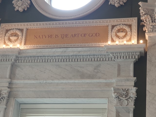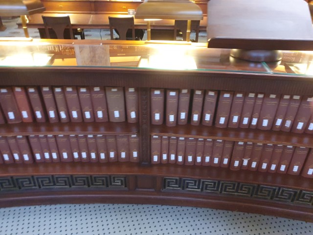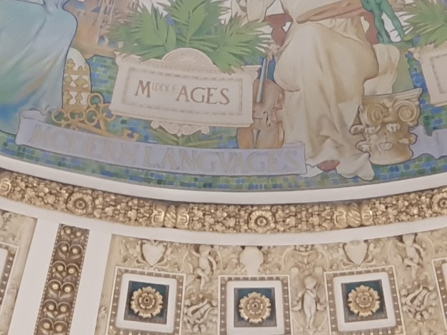 Überhaupt: Es ist leer im Vergleich zum letzten Mal, sehr leer. Schulferien sind vorbei! Auch hier in Amerika! Und Michèle muss zugeben: Der Bau ist schon klasse. Wir lassen uns von ChatGPT die Statuen und Zeichnungen erklären, grasen die Ausstellungen ab und betrachten eine der ersten Gutenberg-Bibeln und fast auch die Mainzer Riesenbibel. Nur: Da wo die stehen soll, stehe ich! Ein Aufseher erklärt uns zu Deutschen! Ooops??? Die Mainzer Riesenbibel ist seit 6 Jahren in der Restaurierung. Und im deutschen und chinesischen Guide steht sie (noch) drin. Die beiden Gruppen fragen dann nach. Und sehr chinesisch sehen wir nicht aus. Also müssten wir Deutsche sein….