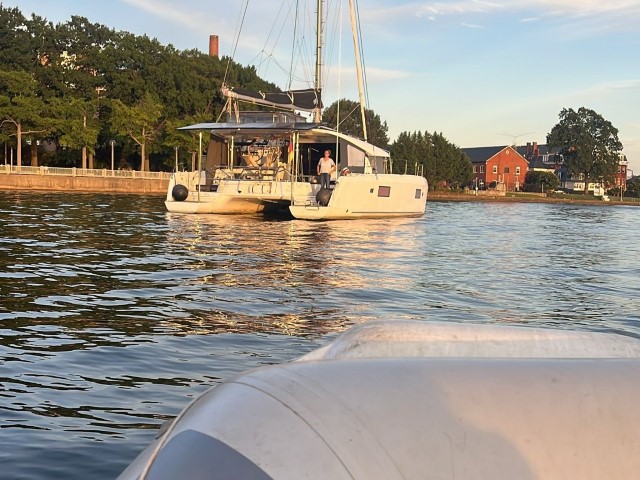 Nun – noch mal den Weg zurück. Inzwischen sind die Straßen recht leer. Da kann ich sie sicher nicht übersehen! Kurz vor der Marina bekomme ich einen Anruf von der VITAMIN: Michèle ist an Bord! Sie hatte die VITAMIN herangewunken und dann gefragt, wo ich sei! Sie wartete schon seit über einer Stunde! Nico hatte sie so nett auf die RE verbracht und den Auftrag, mich zu benachrichtigen dann aber vergessen! Nun – die letzten Meter konnte ich dann ruhiger fahren….