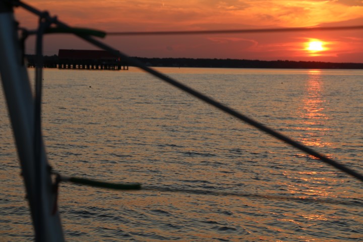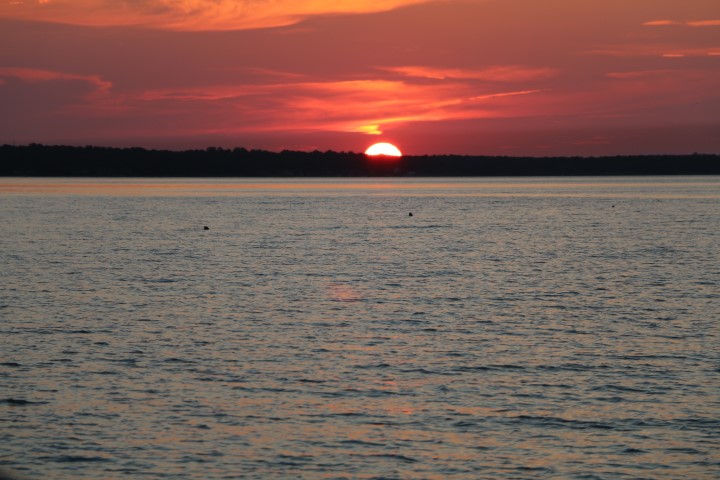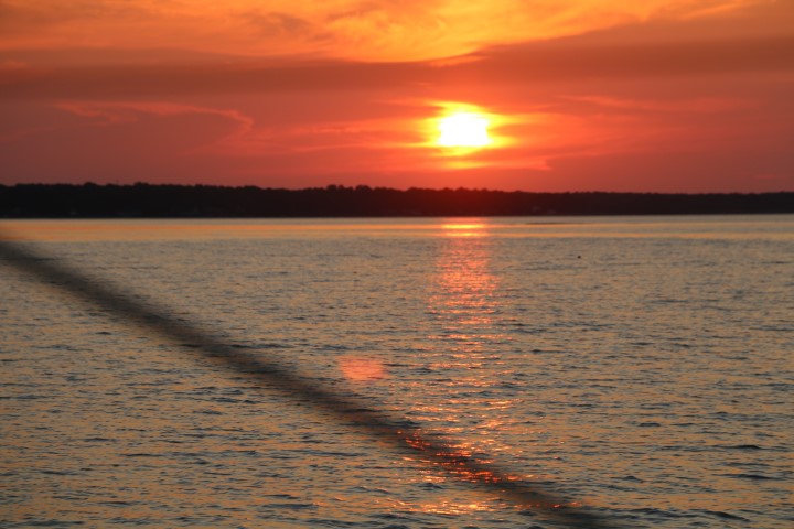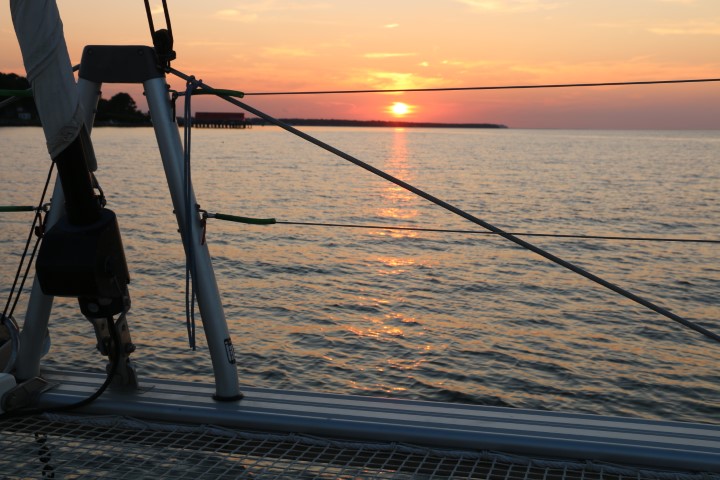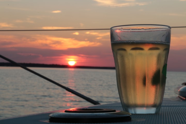 Zum Abend gibt es ein schwer zu beschreibendes Geräusch. Überall springen Fisch aus dem Wasser. Säuselen oder plätschern trifft es nicht. Und dann gibt es einen Sekt zum Sonnenuntergang und eine Reihe Fotos davon. Auch mal schön, wenn nichts zu berichten ist….