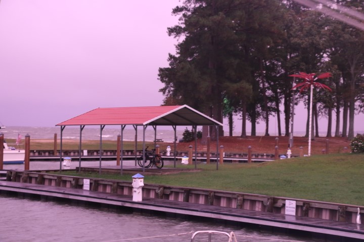 Michèle stürzt sich in die kalten Fluten. Der Pool ist ein wenig ungepflegt, das war bei meinem ersten Besuch mit VITAMIN SEA deutlich besser! Aber sie zieht ein paar Bahnen, da kann ich mich ja nicht lumpen lassen. Nachher lese ich ein wenig, sie will eigentlich an Bord zurück, wird aber auf dem Wege „aufgegriffen“. Nun – der nächste will ein Schwatz mit den „Germans“ halten. Und dann kommen Phyllis und Mike. Die drei holen mich am Pool ab und es gibt auf RE einen Kaffee mit Kuchen!
