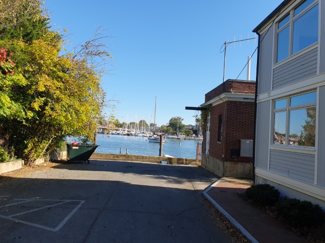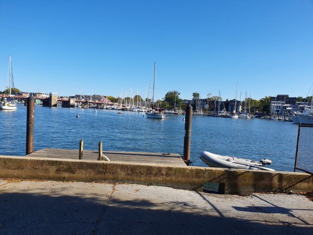 Schön hier in Annapolis: Die Straßen, die bis zum Wasser führen, haben eine „public“ Anlegestelle. So nehmen wir heute die letzte Straße / Anlegestelle vor der Brücke. Das ist dann schon ziemlich im Zentrum.
